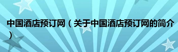 本文關于中國酒店預訂網的簡介就講解完畢,希望對大家有所幫助。
