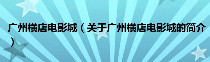 大家好,廣州橫店電影城,關于廣州橫店電影城的簡介很多人還不知道,現(xiàn)在讓我們一起來看看吧!