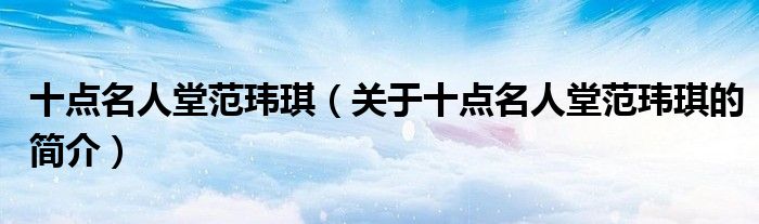 本文關于十點名人堂范瑋琪的簡介就講解完畢,希望對大家有所幫助。