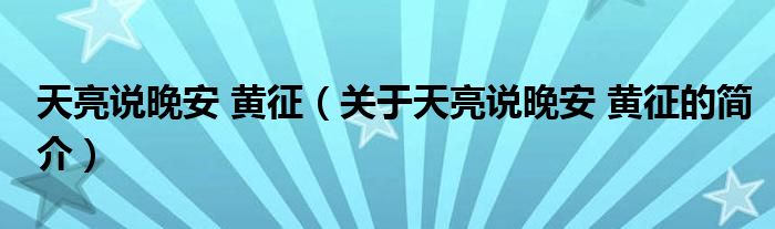 大家好,天亮說晚安 黃征,關于天亮說晚安 黃征的簡介很多人還不知道,現在讓我們一起來看看吧!