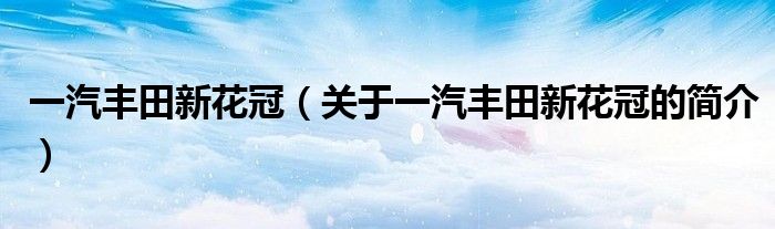 大家好,一汽豐田新花冠,關(guān)于一汽豐田新花冠的簡(jiǎn)介很多人還不知道,現(xiàn)在讓我們一起來(lái)看看吧!