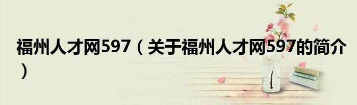 本文關(guān)于福州人才網(wǎng)597的簡(jiǎn)介就講解完畢,希望對(duì)大家有所幫助。