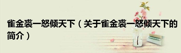 本文關(guān)于雀金裘一怒傾天下的簡(jiǎn)介就講解完畢,希望對(duì)大家有所幫助。