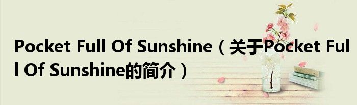 大家好,Pocket Full Of Sunshine,關于Pocket Full Of Sunshine的簡介很多人還不知道,現在讓我們一起來看看吧!