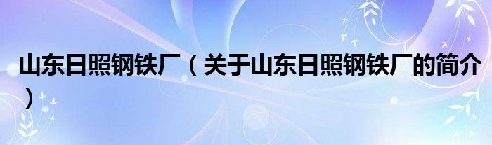 本文關于山東日照鋼鐵廠的簡介就講解完畢,希望對大家有所幫助。