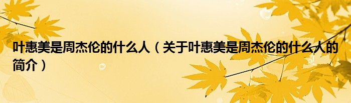 本文關于葉惠美是周杰倫的什么人的簡介就講解完畢,希望對大家有所幫助。