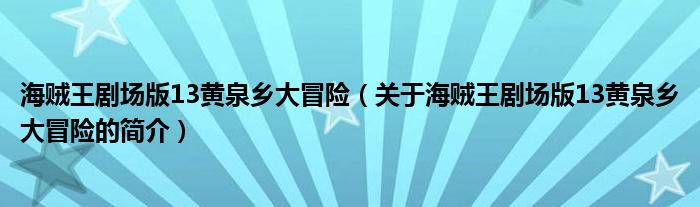 本文關于海賊王劇場版13黃泉鄉大冒險的簡介就講解完畢,希望對大家有所幫助。