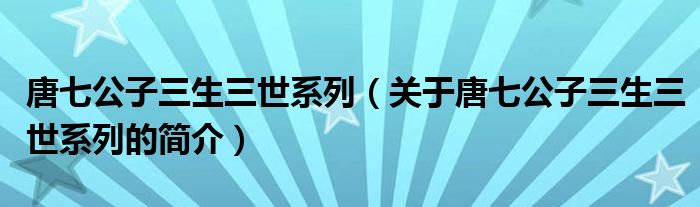 本文關于唐七公子三生三世系列的簡介就講解完畢,希望對大家有所幫助。