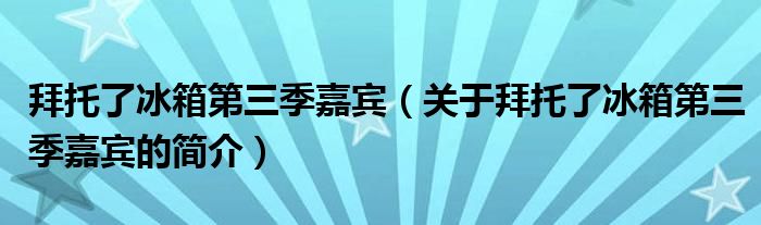 本文關于拜托了冰箱第三季嘉賓的簡介就講解完畢,希望對大家有所幫助。