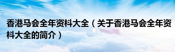 本文關于香港馬會全年資枓大全的簡介就講解完畢,希望對大家有所幫助。