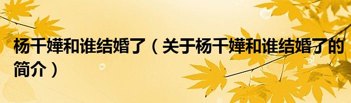 本文關于楊千嬅和誰結婚了的簡介就講解完畢,希望對大家有所幫助。