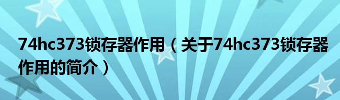 本文關(guān)于74hc373鎖存器作用的簡(jiǎn)介就講解完畢,希望對(duì)大家有所幫助。