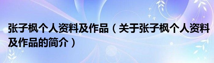 本文關(guān)于張子楓個(gè)人資料及作品的簡(jiǎn)介就講解完畢,希望對(duì)大家有所幫助。