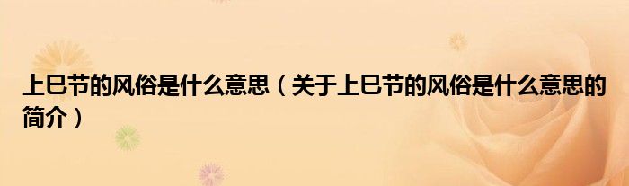 本文關于上巳節的風俗是什么意思的簡介就講解完畢,希望對大家有所幫助。