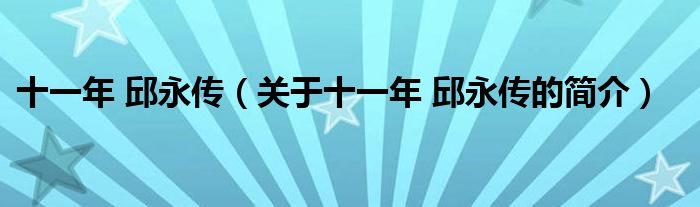 大家好,十一年 邱永傳,關于十一年 邱永傳的簡介很多人還不知道,現在讓我們一起來看看吧!
