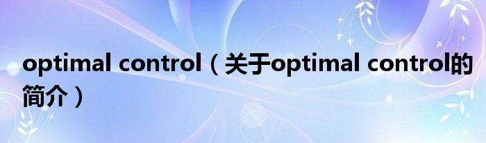 大家好,optimal control,關于optimal control的簡介很多人還不知道,現在讓我們一起來看看吧!