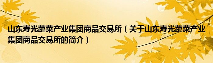 本文關于山東壽光蔬菜產業集團商品交易所的簡介就講解完畢,希望對大家有所幫助。