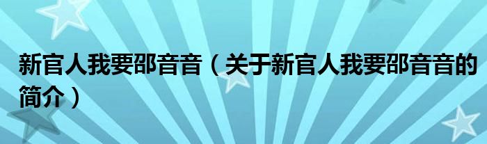 大家好,新官人我要邵音音,關于新官人我要邵音音的簡介很多人還不知道,現在讓我們一起來看看吧!