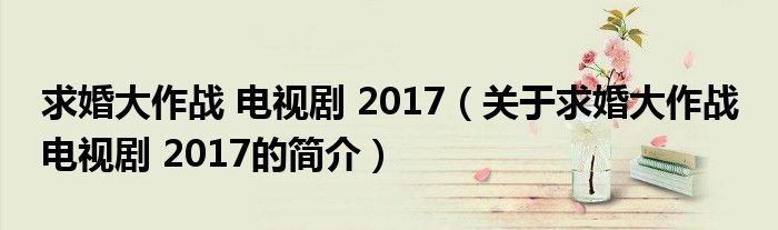 本文關(guān)于求婚大作戰(zhàn) 電視劇 2017的簡介就講解完畢,希望對大家有所幫助。
