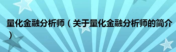 本文關(guān)于量化金融分析師的簡(jiǎn)介就講解完畢,希望對(duì)大家有所幫助。