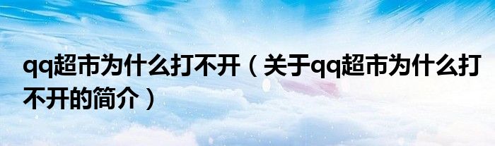 本文關于qq超市為什么打不開的簡介就講解完畢,希望對大家有所幫助。
