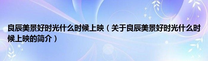 本文關于良辰美景好時光什么時候上映的簡介就講解完畢,希望對大家有所幫助。