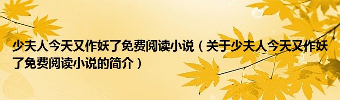大家好,少夫人今天又作妖了免費閱讀小說,關于少夫人今天又作妖了免費閱讀小說的簡介很多人還不知道,現在讓我們一起來看看吧!