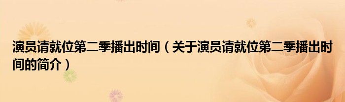 本文關于演員請就位第二季播出時間的簡介就講解完畢,希望對大家有所幫助。