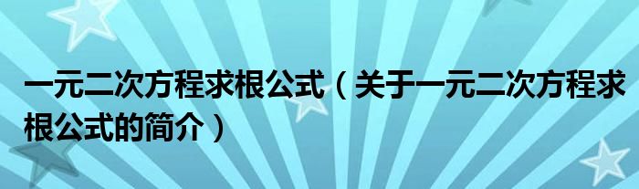 本文關于一元二次方程求根公式的簡介就講解完畢,希望對大家有所幫助。