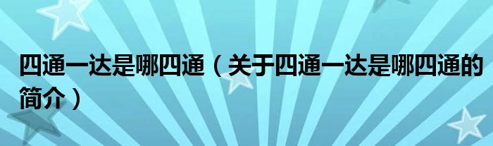 本文關于四通一達是哪四通的簡介就講解完畢,希望對大家有所幫助。