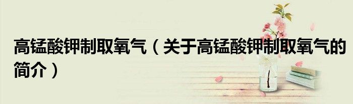 本文關于高錳酸鉀制取氧氣的簡介就講解完畢,希望對大家有所幫助。