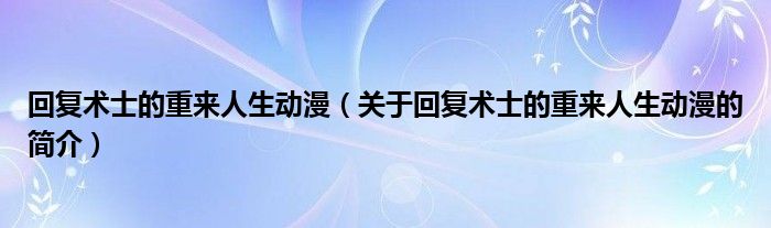 大家好,回復(fù)術(shù)士的重來人生動漫,關(guān)于回復(fù)術(shù)士的重來人生動漫的簡介很多人還不知道,現(xiàn)在讓我們一起來看看吧!