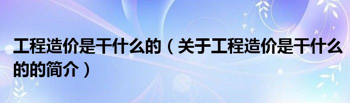 本文關于工程造價是干什么的的簡介就講解完畢,希望對大家有所幫助。