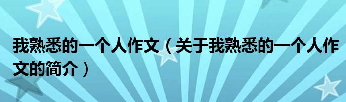 本文關于我熟悉的一個人作文的簡介就講解完畢,希望對大家有所幫助。