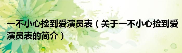 本文關于一不小心撿到愛演員表的簡介就講解完畢,希望對大家有所幫助。