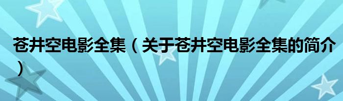 本文關(guān)于蒼井空電影全集的簡(jiǎn)介就講解完畢,希望對(duì)大家有所幫助。