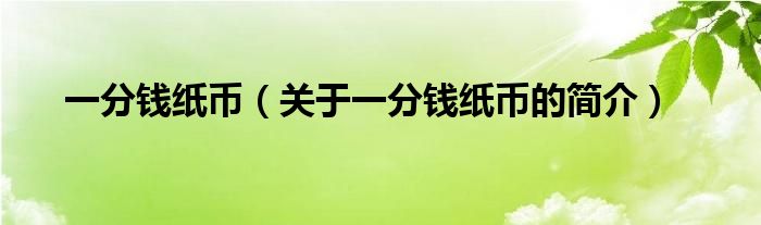 本文關于一分錢紙幣的簡介就講解完畢,希望對大家有所幫助。