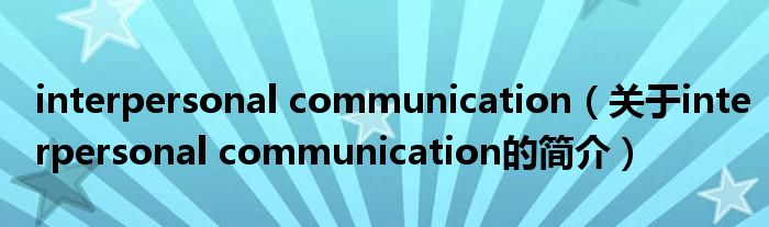 大家好,interpersonal communication,關于interpersonal communication的簡介很多人還不知道,現在讓我們一起來看看吧!