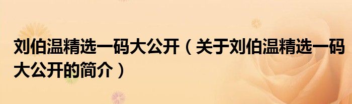 本文關(guān)于劉伯溫精選一碼大公開的簡介就講解完畢,希望對大家有所幫助。
