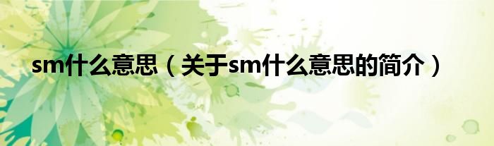 本文關于sm什么意思的簡介就講解完畢,希望對大家有所幫助。