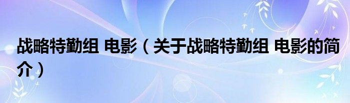 大家好,戰(zhàn)略特勤組 電影,關(guān)于戰(zhàn)略特勤組 電影的簡介很多人還不知道,現(xiàn)在讓我們一起來看看吧!