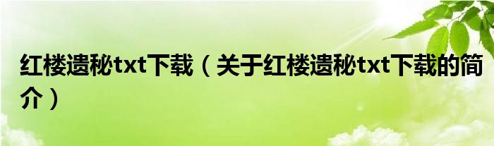 本文關(guān)于紅樓遺秘txt下載的簡介就講解完畢,希望對大家有所幫助。