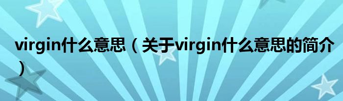 本文關(guān)于virgin什么意思的簡(jiǎn)介就講解完畢,希望對(duì)大家有所幫助。
