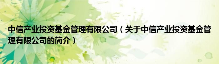 本文關于中信產業投資基金管理有限公司的簡介就講解完畢,希望對大家有所幫助。