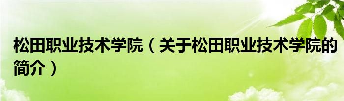 本文關于松田職業技術學院的簡介就講解完畢,希望對大家有所幫助。