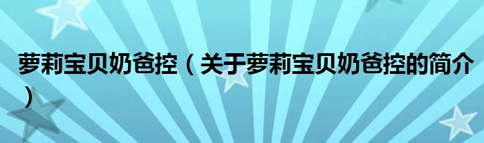 本文關于蘿莉寶貝奶爸控的簡介就講解完畢,希望對大家有所幫助。