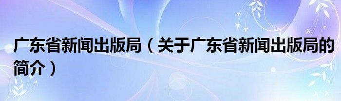 本文關于廣東省新聞出版局的簡介就講解完畢,希望對大家有所幫助。
