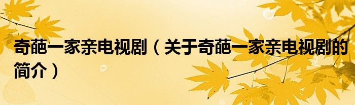 大家好,奇葩一家親電視劇,關于奇葩一家親電視劇的簡介很多人還不知道,現在讓我們一起來看看吧!