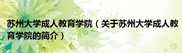 本文關(guān)于蘇州大學(xué)成人教育學(xué)院的簡介就講解完畢,希望對大家有所幫助。