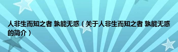 大家好,人非生而知之者 孰能無惑,關(guān)于人非生而知之者 孰能無惑的簡介很多人還不知道,現(xiàn)在讓我們一起來看看吧!